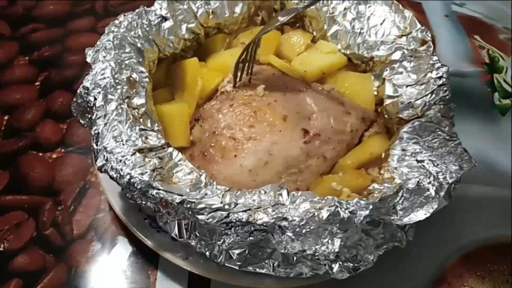 Получилось быстро и вкусно. Сочные куриные ножки с хрустящей корочкой. Не надо горшочков. Блюдо готовится в фольге. Добавим картошку и получим гарнир к мясу. Рецепт: Нарежем лук полукольцами. Лук режем кому как нравится. Картофель порежем пластинами. К мясу добавим лук, аджику, картофель, майонез и чеснок. Хорошо перемешаем. От фольги отрежем небольшого размера квадрат. Выложим на середину картофель с мясом. Завернем фольгу. Сделаем еще один слой фольги. Кулечки ставим в духовку при 180 градусах на 30 минут. Через 30 минут раскроем каждый кулечек и снова ставим в духовку на 30 минут при 200 градусах. Мясо подрумянилось, можно доставать. Ссылка на видео: Предлагаю видео рецепт куриных рулетиков: Еще одно видео мясного рулета: