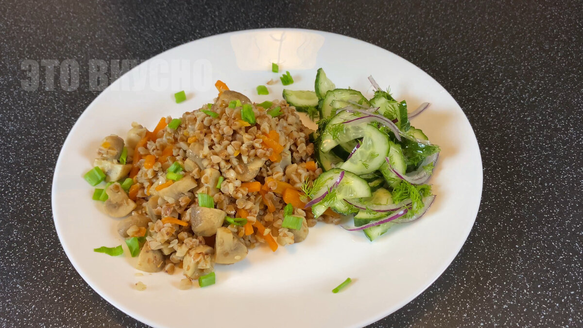 Ленивая постная гречка с грибами. Одна сковорода, минимум усилий и вкусный ужин на столе