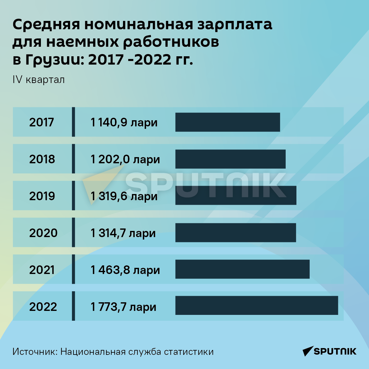 В инфографике Sputnik Грузия вы узнаете, как менялась ежемесячная заработная плата в 2017-2022 годах (IV квартал), согласно данным Национальной службы статистики.