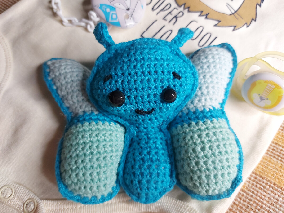 Связала сыночку на прогулке игрушку-погремушку БАБОЧКУ крючком