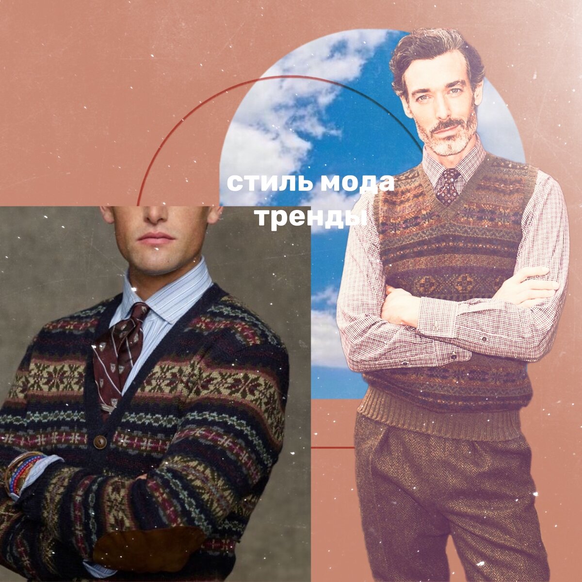 Странно, что наши ребята часто отказываются от красоты чисто джентльменского образа и носят на работу и в офис только пиджаки. А если непонятная погода, как в той же Англии— то дождь, то солнышко, а то и ледяной ветер? В моду настойчиво возвращаются старые добрые вязаные жилеты. И если у подростков они оверсайз, до чуть повзрослевшие юноши и девушки предпочитают носить приталенные вязаные жилеты. Под них надевают полосатую или клетчатую рубашку. Я побывала в лондонском ателье, которое уже много лет одевает лондонцев и заезжих модников . Вы видите их варианты, как сочетать головной убор с рубашкой и жилетом. Кстати, связать жилет довольно просто. Помню, я свой первый связала в 10 лет, из остатков пряжи. Пестрый получился, но родители и сверстники были впечатлены. Что важно помнить: окантовка вяжется спицами очень плотной резинкой. Я обвязываю уже на круговых пройму и ворот или на более тонких, а потом сшиваю в углах. Сами орнаменты очень просты и повторяются столетиями: крестик,