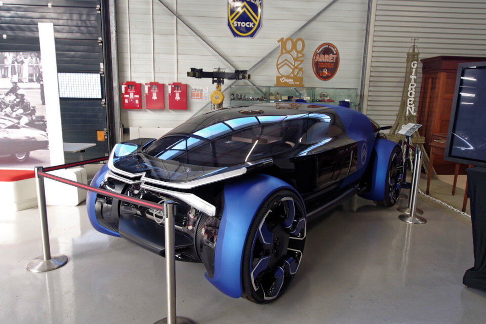 Монстр, созданный для увековечивания 100-летнего юбилея фирмы. В это сложно поверить, но если присмотреться, то у него много общего с различными моделями Citroen — например, цвет у машины точно такой же, какой был у Petite Rosalie фирмы Yacco. Заднее стекло расположено под обратным углом (само стекло, впрочем, находится не на привычном месте, а на хвосте машины, как у каммбэка), это дань уважения Ami и C6. Руль односпицевый (сами знаете в честь чего), а на этой спице расположен дисплей, показывающий различные логотипы компании, причем, при повороте руля, логотип все равно будет расположен горизонтально — отсылка к рулям с неподвижной центральной частью у того же C5.
