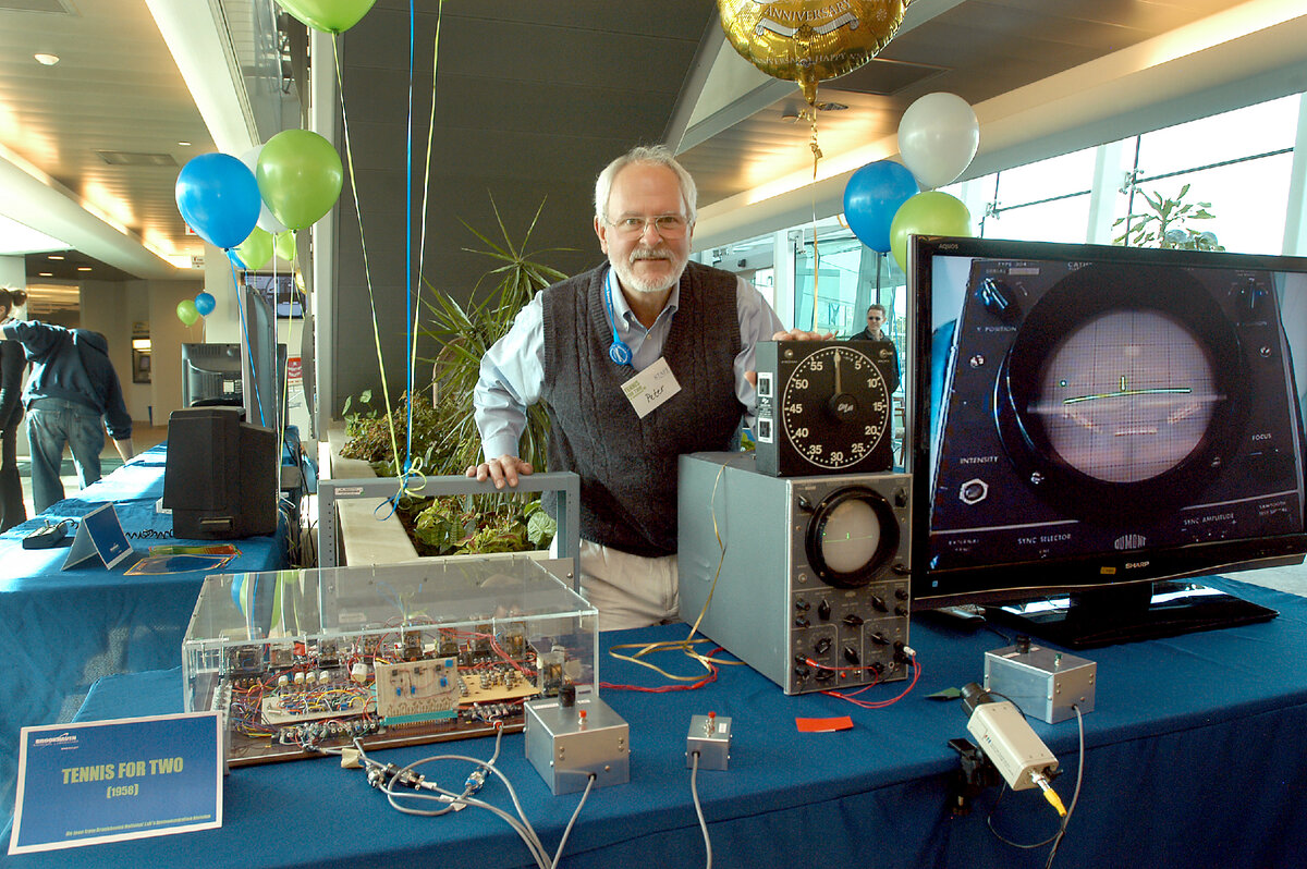 Одна из первых электронных игр была создана в 1958 году и называлась "Tennis for Two". Она была придумана ученым Брукхейвенской национальной лаборатории Уильямом Хиггинботтом, который использовал аналоговый компьютер для создания игры.