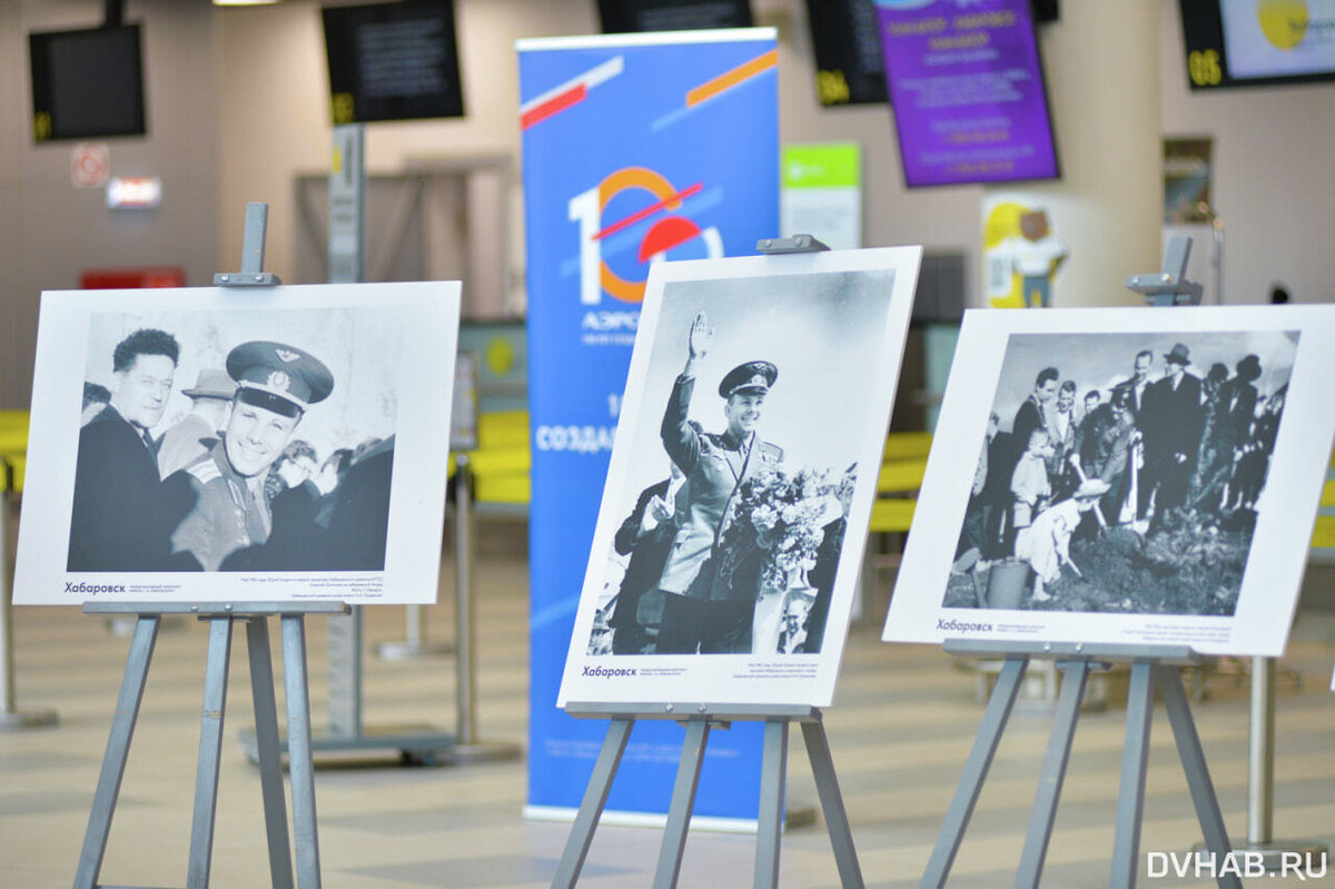 Ко Дню космонавтики в терминале внутренних авиалиний состоялась презентация новой выставки, посвященной визиту Юрия Гагарина в краевую столицу. В этому году к празднику решили подготовить тематическую экспозицию, которая отправит хабаровчан на экскурсию в то время. Церемония открытия началась со вступительного слова внука легендарного советского летчика-космонавта, который возглавляет международный аэропорт Хабаровск. - В этом году мы сделали такую выставку, чтобы еще раз вспомнить те времена, когда Юрий Алексеевич посещал Хабаровск. Можно сказать, что это выставка в духе времени, который мы старались вам передать, - поприветствовал присутствующих Юрий Кондратчик, генеральный директор АО «Международный аэропорт Хабаровск». Новая экспозиция объединила фотографии мая 1962 года. Основную часть снимков для выставки предоставил Хабаровский краевой музей имени Н.И. Гродекова, еще несколько экземпляров - Государственный архив края и музей истории Индустриального района. Помимо значимых снимко