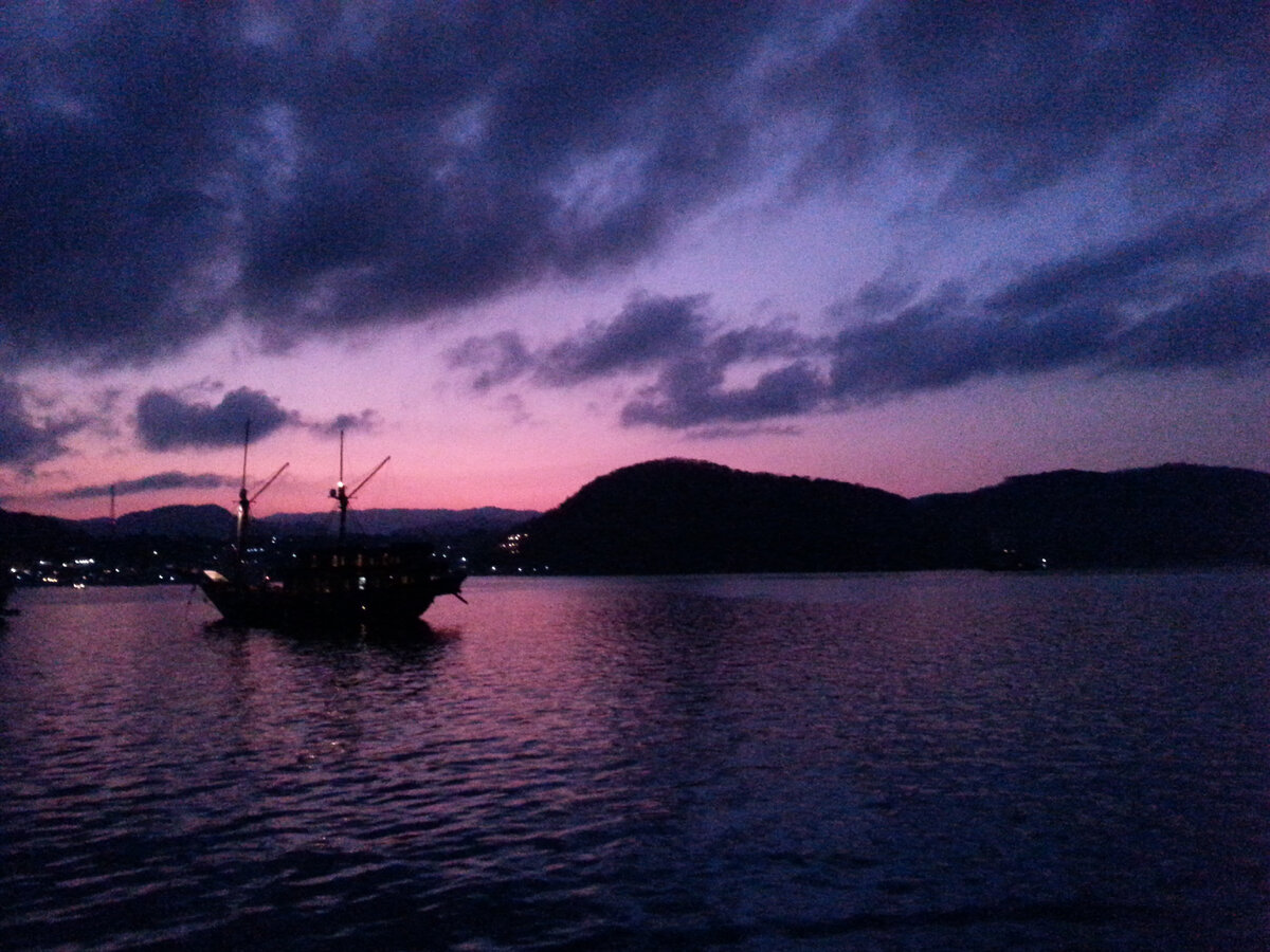 Четвертый день тура на Комодо лично для меня был самым интересным за весь тур, очень красиво начался и так же красиво завершился. Утро я встретил на яхте, пришвартованной в порту города Лабуан Баджо на западном побережье острова Флорес. Даже не мог себе представить, что так приятно будет проснуться рано утром на палубе корабля в спальном мешке. Спал в последний раз в спальном мешке лет 25 назад, а на корабле - первый раз в жизни. Я расстегнул молнию, поднялся и замер от восхищения. Кто видел гавань Лабуан Баджо ранним утром, поймет мое восхищение. Место очень красивое: несколько маленьких островков, десяток больших деревянных кораблей, очень живописный берег Флореса. В это время нет излишней дневной суеты. Если повернуться боком или спиной к городу, кажется, что находишься в маленьком португальском колониальном порту в 17 или 18 веке (тогда Флорес был португальской колонией). Хотелось крикнуть «Как хорошо», как хорошо, что я удержался на вчерашней вечеринке от неумеренного распи