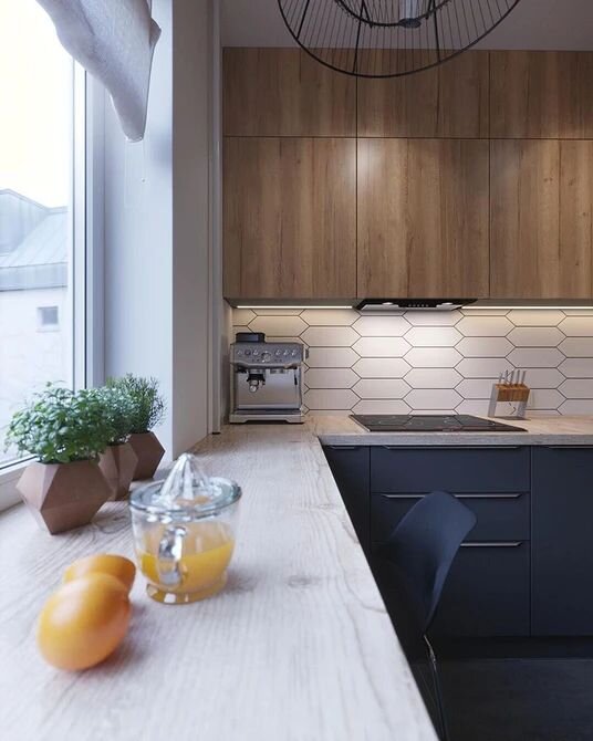 Дизайн современной квартиры предполагает, что все объекты, предметы и вещи будут гармонично сочетаться между собой. Окна также должны вписываться в общую стилистику, создавая эстетичный интерьер. В приоконной зоне можно сделать обеденную или рабочую зону, место для отдыха или поставить тумбу с мойкой, выбор будет зависеть от площади, стороны света и конфигурации. Варианты, как можно обыграть оконные проемы в дизайне кухне, чтобы это выглядело стильно и интересно. Подоконник в качестве обеденной зоны В этом случае убивается сразу два зайца – используется пространство, которое обычно не задействовано, а также значительное расширение места. Если проживает 1-2 человека, то обеденный стол можно не ставить, это особенно актуально для малогабаритных квартир. Столешницу лучше сделать из того же материала, что и основная, тогда интерьер будет смотреться цельным и гармоничным. Когда подоконник не используется как стол, его можно привлечь в качестве дополнительной рабочей поверхности. В конце
