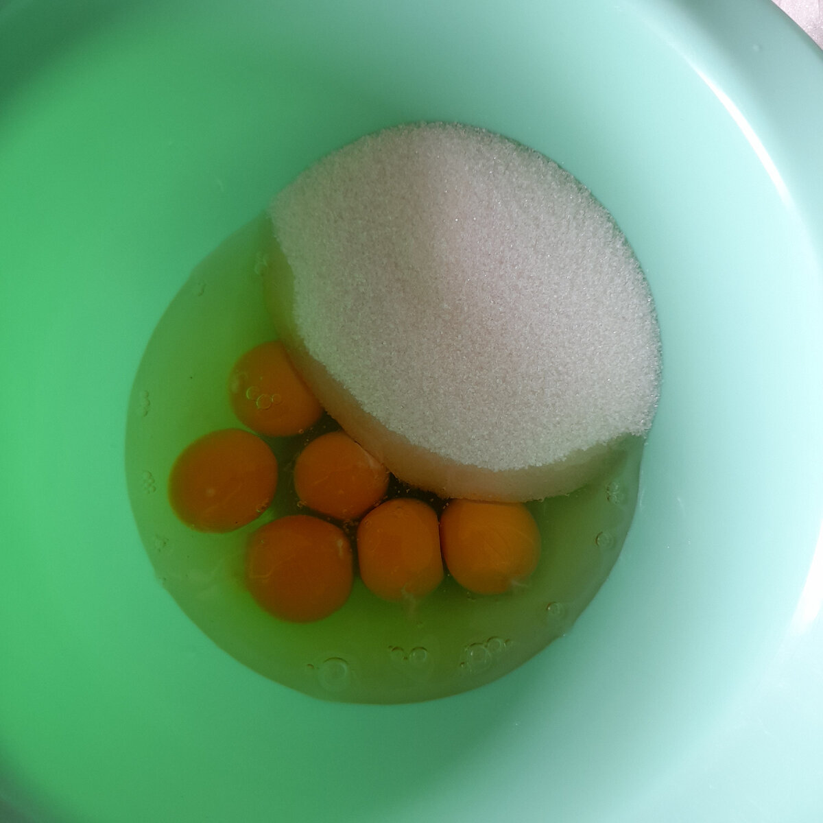 Сегодня хотела купить в магазине торт к чаю. Посмотрела, немного офигела от цен (давно не покупала). Маленький тортик стоит от ... (вобщем мне жалко эти деньги отдавать за него), но это нельзя назвать тортиком, скорее всего это какое-то пирожное, а у меня семья из 4-х человек, из них два взрослых мужика, как таким всех накормить? Это ж так, только попробовать. Что ж, чай теперь только с баранками и сушками пить? Что-то в горло уже не лезут. Решила я не лениться и испечь для своей семьи тортик сама. Тем более продукты дома все имелись. Испекла сначала обычный бисквит: 6 яиц, 300 г сахара и щепотку соли взбила до пышной крепкой пены.Соль нужно добавлять, чтобы пена была крепче. Взбивала около 7 минут без остановки на максимальной скорости, попутно добавила чуть ванильного сахара и разрыхлителя (примерно 1 ч.л. без горки) Затем добавила 300 г муки и опять всё перемешала до однородной консистенции. Затем форму для выпечки смазала маслом слегка посыпала дно формы манной крупой, чтоб