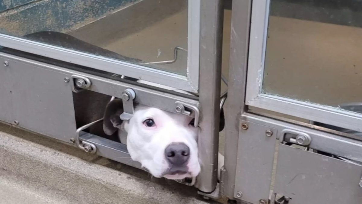 В приюте собака высунула голову из вольера, умоляя не бросать ее
