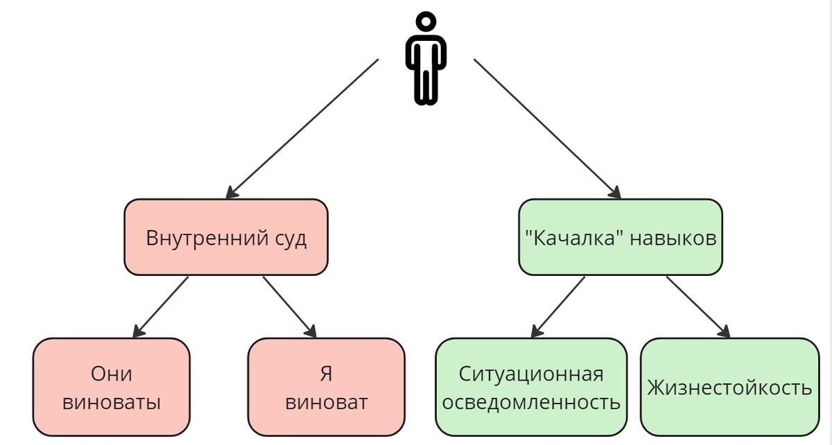 Второе. Возникающие с людьми трудности воспринимать, как необходимость прокачки соответствующих навыков. В данном случае, ситуационной осведомленности и жизнестойкости.