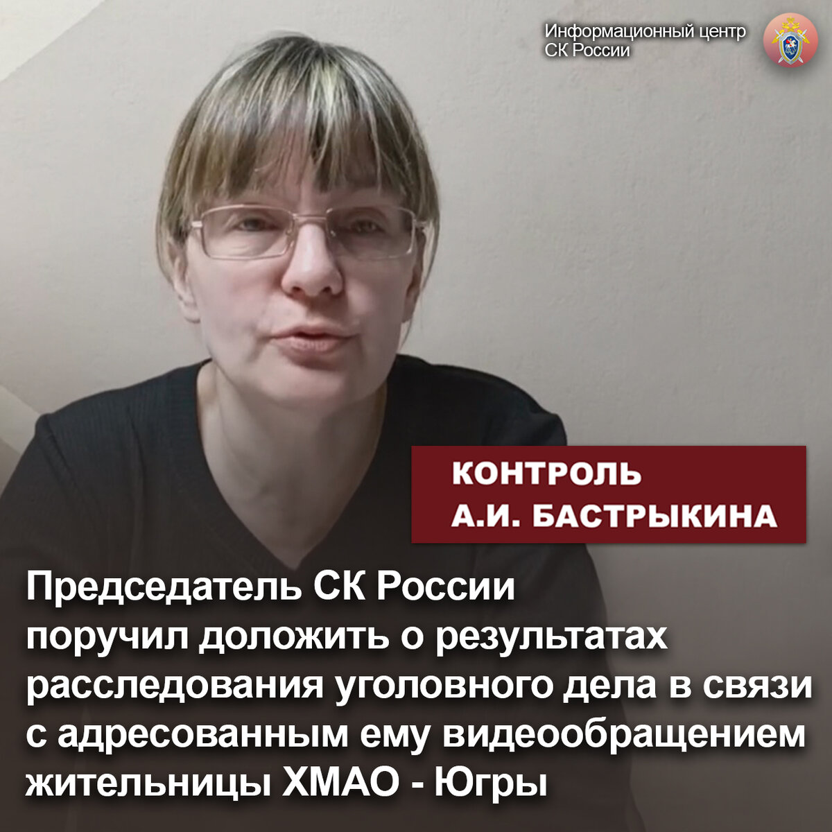 Председатель СК России поручил доложить о результатах расследования уголовного дела в связи с адресованным ему видеообращением жительницы ХМАО - Югры