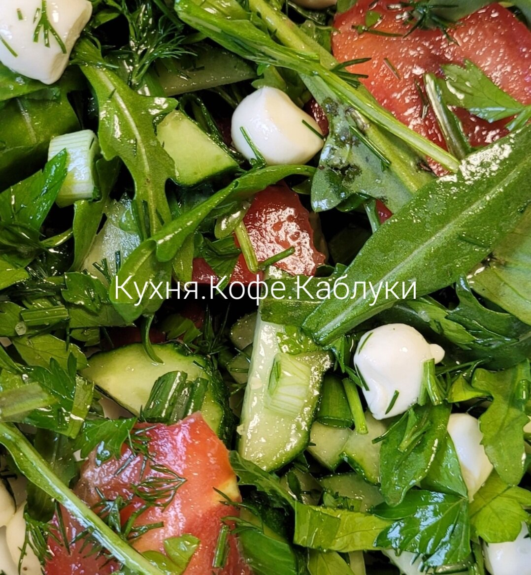 Самый простой и вкусный салат. Доступные ингредиенты: ✍️руккола -70г. Рукколу промыть и просушить.Очень вкусный салат для любителей и ценителей рукколы! Чем полезна руккола для🙋♀️ девчоночек?! 1]Поддерживает хорошее и красивое состояние кожи. 2]расглаживает морщины. 3]улучшает цвет лица. 4]укрепляет волосы и ногти. 5]осветляет пигментные пятна. 🥒1шт-огурец 🍅1шт-помидор. Нарезать огурцы и помидоры. Нарубить ножом зелень: ✍️укроп-5веточек. ✍️петрушка-5веточек. ✍️лук зелёный по вкусу. В салат я добавила моцареллу перлини-маленькие шарики. ✍️1ст.л.оливковое масло. ✍️соль и чёрный перчик по вкусу. Салат перемешать и подать к столу. Хрустящий,сочный и очень вкусный салат...для тех, кто готовит свою фигуру к лету😁😉👌 Спасибо за лайки и добрые комменты🌹подписку на канал🌹🌹 #салатруккола #хрустящиесалаты.