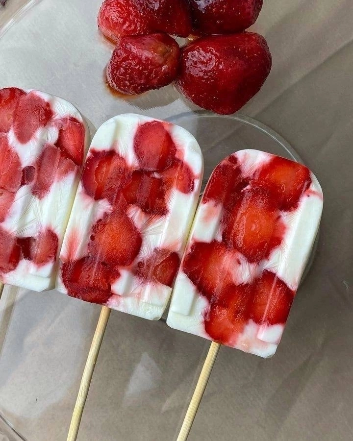 Это отличная альтернатива калорийному мороженому из магазина! Греческий йогурт содержит мало сахара и углеводов. Зато белка, полезных бактерий и кальция в нем в два раза больше, чем в обычном. За счет этого он насыщает: можно смело съесть такое мороженое на завтрак. Ингредиенты: 🥛 йогурт греческий 2% — 450 гр 🍓 клубника замороженная — 100 гр 🍚 сахзам — по желанию Приготовление: Приготавливаем форму, в которой будем замораживать мороженое. Йогурт переливаем в глубокую тарелку и перемешиваем венчиком, можно добавить сахарозаменитель. Нарезаем клубнику небольшими слайсами. Выкладываем йогурт, затем клубнику, заполняем полностью форму. Убираем в холодильник на 2-3 часа до застывания.