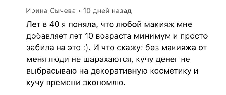 Увидела вот такой комментарий под одним из видео: Заметили, что изначально Ирина хотела краситься, но из-за того, что не получалось-она опустила руки? И начала искать в этом преимущества для успокоения?! Я заметила… Чтобы такого не произошло, следует соблюдать 5 основных правил и посмотреть это видео: ✔️Уход/подготовка перед макияжем Обязательный пункт в не зависимости от типа кожи. ✔️Тональный крем/консилер по типу кожи. Ведь если кожа выглядит безупречно - это 90% успешного макияжа! ✔️Кремовые текстуры для коррекции Выглядят более натурально и не подчеркивают морщинки ✔️Матовые тени (сияние только на подвижной веко) Матовые тени сглаживают текстуру век ✔️Свежие оттенки Создают отдохнувший вид, придают свежесть и молодость Косметику,которую я использовала на видео,можно посмотреть тут А что вы используете в своём макияже?😉