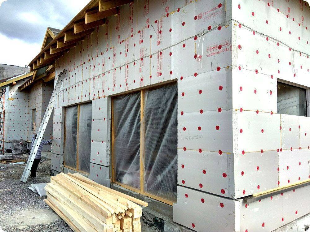 ЭППС отличный утеплитель для фундаментов и отмосток, так как прочнее пенопласта и совершенно не впитывает влагу. Он незаменим при устройстве бетонных стяжек и монолитных полов по грунту, а также, в системах теплого пола. Его используют при мощении парковок и дорожек в местности с высоким уровнем грунтовых вод и сильным морозным пучением. Но что бы там не рекомендовали системодержатели, на фасадах ему делать нечего – для вентилируемого он слишком горюч, для мокрого слишком капризен и ненадежен.