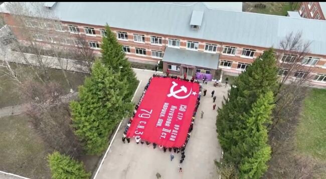 В Ясногорске под "День Победы" и песню SHAMANа "Встанем" развернули огромное знамя Победы