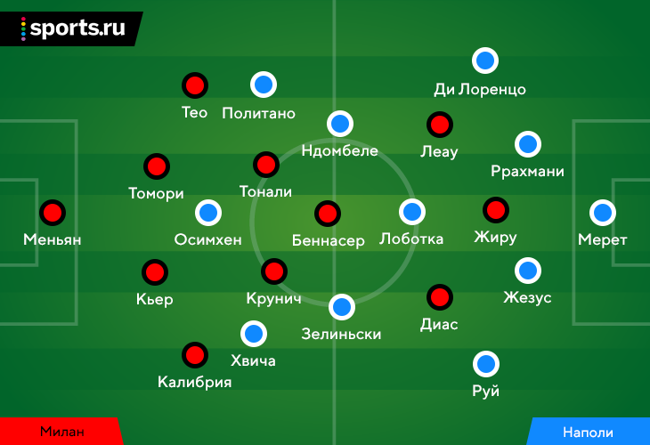 Возвращение Осимхена Лучано Спаллетти анонсировал еще после первой игры в Милане. Перед ответной оставалось решить еще два вопроса – как компенсировать потерю Кима и Замбо-Ангисса, которые пропускали матч из-за дисквалификации. Лидера обороны «Наполи» в итоге подменил Жуан Жезус, а ведущего полузащитника – схожий по качествам и манере Танги Ндомбеле.