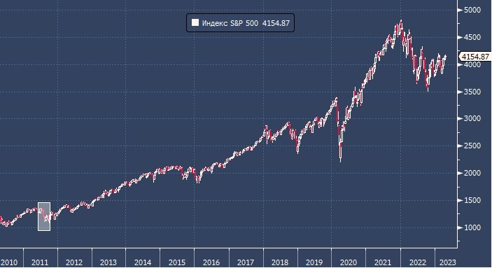 Эксперт Goldman Sachs проводит параллели с теми событиями, которые мы наблюдали в 2011 г., когда жаркие споры о повышении госдолга оказали заметное негативное влияние на финансовые рынки. График индекса S&P 500 интервалами 1 неделю. Республиканцы Палаты представителей планируют на следующей неделе проголосовать за законопроект, который поднимет потолок госдолга США и предусмотрит резкое сокращение расходов США, при этом консерваторы требуют дополнительных изменений, а президент Джо Байден и другие лидеры демократов отказываются идти на уступки. США могут объявить дефолт по своим платежным обязательствам уже в июне без дополнительного одобрения повышения долга со стороны Конгресса. Как ожидается, глава Минфина США Джанет Йеллен после подсчета налоговых поступлений обновит точку дедлайна уже в конце этой недели. Риски противоборства по этому вопросу между республиканцами и демократами нарастают. Это может превратиться в серьезную проблему. А если так, то это приведет к значительному паде