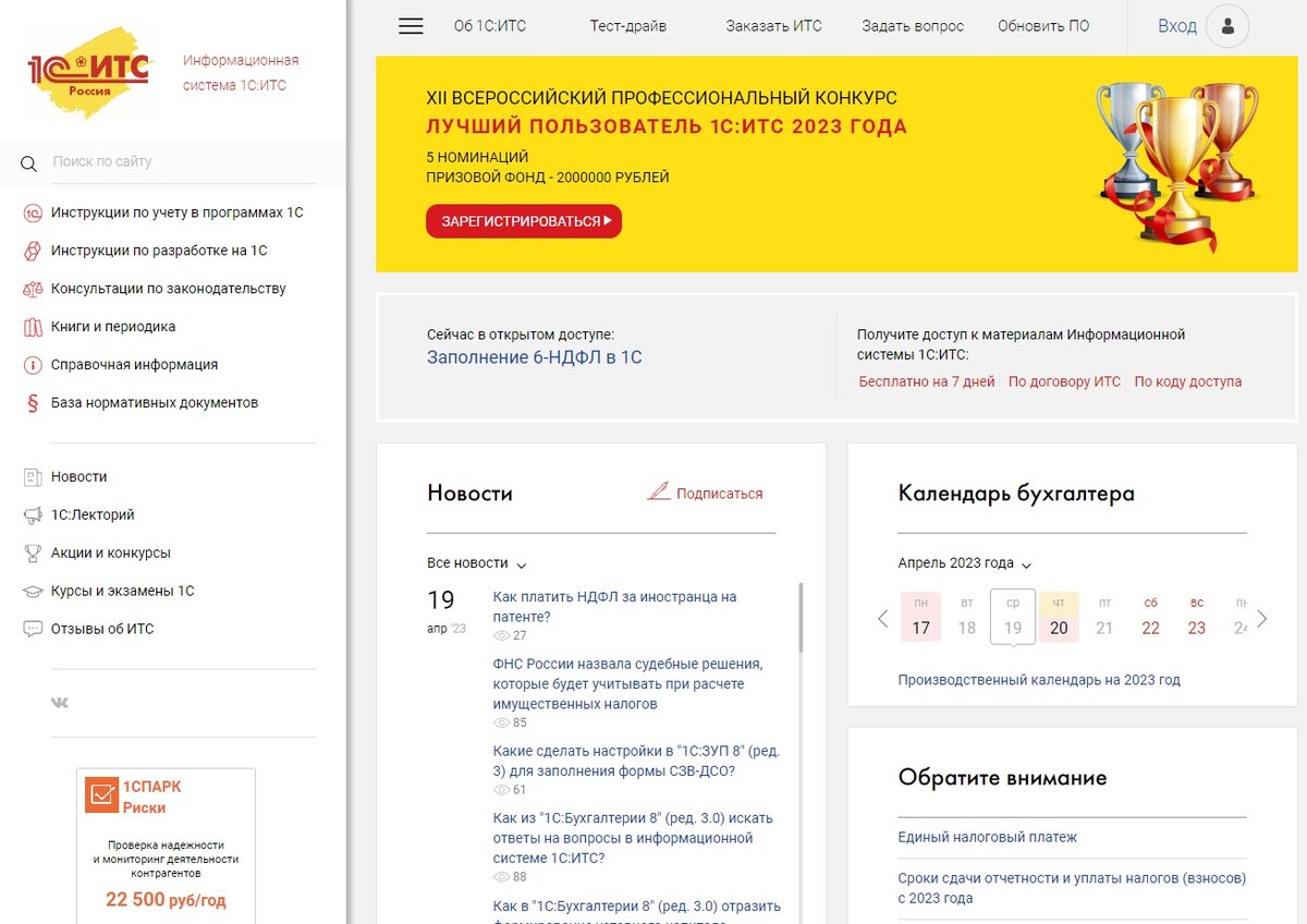 Как получить доступ к информационной системе 1С:ИТС совершенно бесплатно? 😃 Зарегистрируйтесь в качестве участника конкурса 🏆 «Лучший пользователь 1С:ИТС» и до 31 июля 2023 года пользуйтесь ею совершенно бесплатно. Но если вы решите не только зарегистрироваться, но и принять участие в испытаниях, то доступ может быть предоставлен и на более длительный срок. В таком случае вы даже сможете претендовать на более серьёзные подарки – призовой фонд конкурса в этом году превышает 💰 2 000 000 рублей!