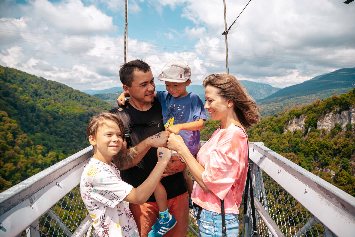 Протяженность моста, соединяющего два склона ущелья — 439 метров, а с его балконов открывается головокружительная панорама кавказских гор, колхидских лесов и морского пейзажа. Красочные фотографии из парка займут первое место в семейном альбоме. Прогулка по мосту не требует особенной смелости, поэтому даже самый нерешительный гость ее осилит.