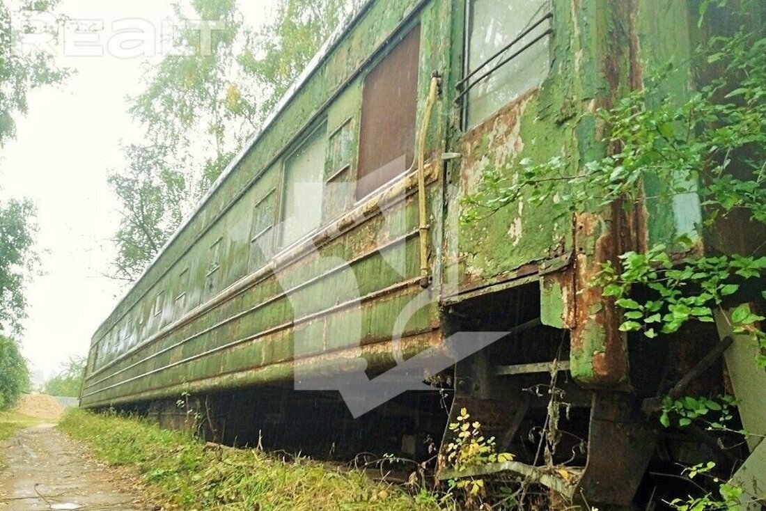 Нашли в базе Realt дачу в Смолевичском районе. Фактически это участок с фундаментом-недостроем, на котором стоит бытовка для временного проживания и настоящий вагон поезда.