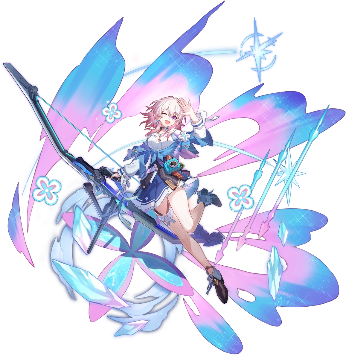 Март 7 – четырехзвездочный персонаж лёдяной стихии, придерживающийся пути сохранения. Внутриигровое описание: Девушка, которая когда-то дремала в вечных льдах и ничего не знает о своём прошлом. Чтобы узнать правду о своём происхождении, она решила отправиться в путешествие на Звёздном экспрессе. На данный момент она подготовила почти 67 различных версий своей жизни для себя. Она, хочет узнать правду, которая была скрыта от неё на протяжении всей её жизни, она поняла, что не хочет жить той жизнью, которую она знала до этого. Ей пришлось принять свою сущность, чтобы вернуться к людям и узнать, что же произошло с ней и её семьёй. И она будет идти к своей цели, даже если это будет опасно и трудно. Актеры озвучания EN: Skyler Davenport - Американская актриса кино и озвучивания. Известна своей ролью Софи в фильме 2021 года See for Me. Аниме: 2015 2016 2017 2019 2020 2021 2022 JP: Ogura Yui - Японская актриса озвучания (сэйю) J-поп идол. участница дуэта YuiKaori с Каори Исихарой и группы