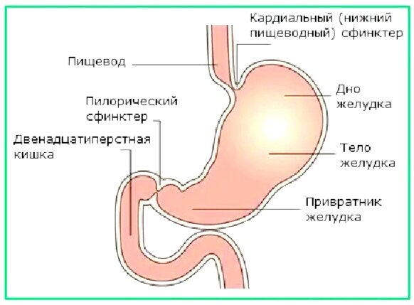 Теперь самое главное: в кишечнике всегда щелочная среда, а в желудке-кислая. Причем кислотность в самом желудке, распределена не одинаково. Самая сильная кислота находится в верхнем отделе желудка, который называется: «дно желудка». На схеме всё прекрасно видно. Вот такая несуразица с желудком-дно вверху))). Чем ближе к пилорусу, тем кислота становится всё слабее и у самого пилорического сфинктера, среда практически нейтральная. Только в случае нейтральности переваренных масс, пилорус откроется и выпустит порцию нейтральной массы в кишечник. И никак по другому. В 12 перстную кишку ( на расстоянии 12 пальцев, отсюда и 12 перстная), открывается сфинктер Одди, через который выходят секреты печени ( желчь), и соки поджелудочной железы. Все эти жидкости имеют щелочную реакцию. И дальше по всему кишечнику реакция среды будет щелочная. С этим понятно? Думаю да.