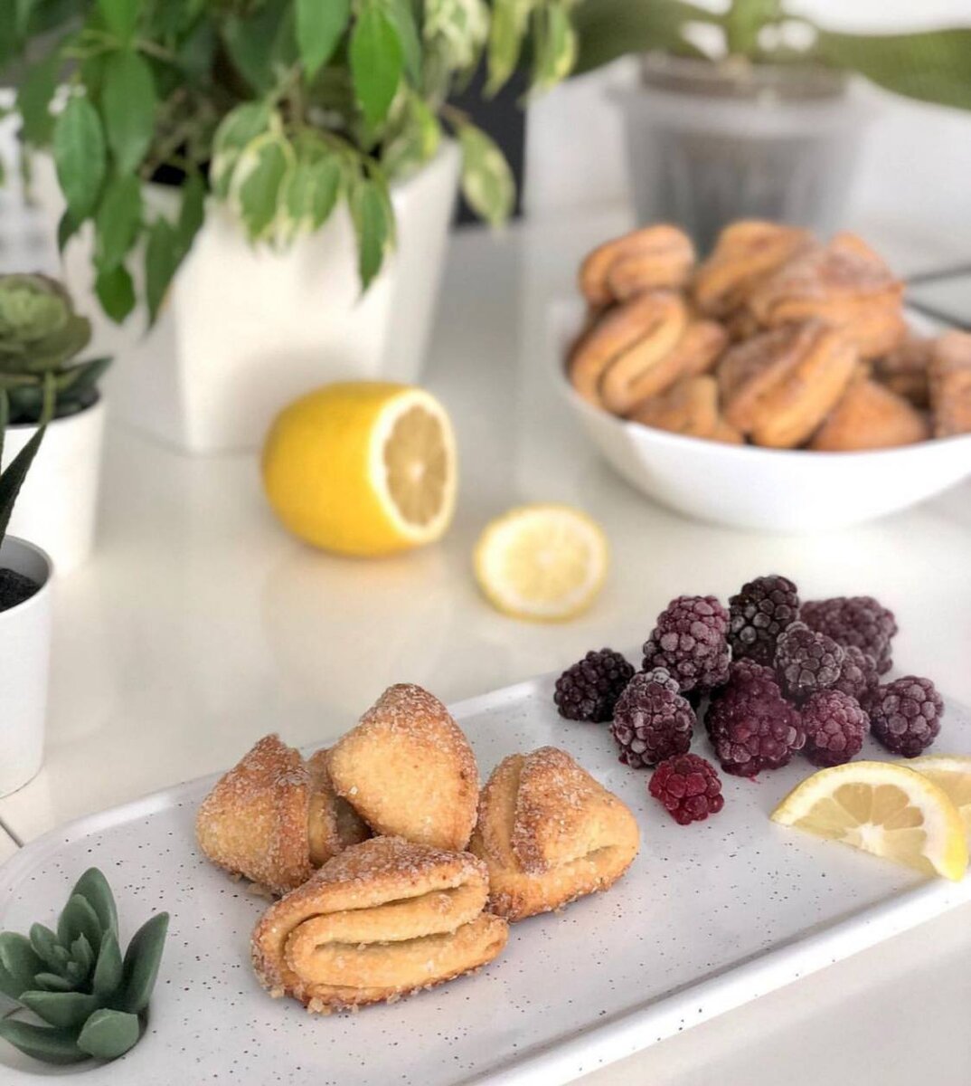 Все как мы любим: минимум времени, максимум вкуса) 🧈180 г сливочного масла (подмороженное) 🍚180 г творога 🥛~ 270 г муки (регулируйте) 🥚2 желтка 🧊2 ст л холодной воды 🍥~ 50 г сахара Масло натираем на терке, добавляем творог, перемешиваем, всыпаем муку, перемешиваем, туда же желтки и воду. Хорошо мешаем (это не сложно и быстро), раскатываем сразу все тесто толщиной ~ 5 мм. В отдельную миску высыпаем сахар. Включаем духовку на 170’. Стаканом вырезаем из теста кружочки, обваливаем кружочек в сахаре, складываем пополам и ещё раз пополам. Конвертики выкладываем на пергамент. Выпекаем в разогретой духовке примерно 25 минут. Проверяйте, чтоб были румяненькие. Вот и все дела, вы - самая лучшая хозяюшка на свете ❤