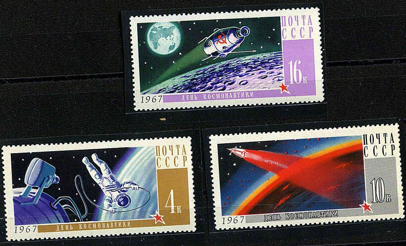 Почтовые марки в честь Дня космонавтики, 1967 год. 30 марта.