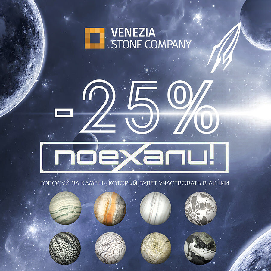 - купить мрамор, победивший в голосовании, со скидкой 25% Акция действует во всех филиалах Venezia Stone. Сроки проведения акции могут измениться в связи с наличием/отсутствием на складе камня-победителя. А ниже мы разместили камни участники. Голосуйте в удобных для Вас соц.сетях и забирайте скидку на камень-победитель в 25%! Venezia Stone - все о натуральном камне! Тел. для связи: 8(800)-100-5-888 График работы офиса в Москве: Пн-пт 9.00-18.00, сб 10.00-18.00, вс вы