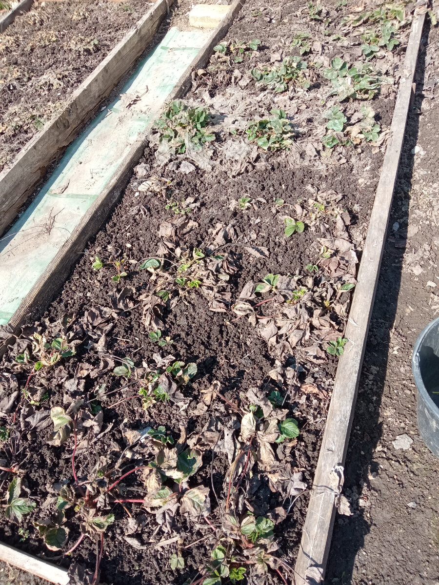 В процессе пришлось выкинуть 2-3 куста, они не подавали признаков жизни, к сожалению такое бывает. На их место посадила сразу же оставленные с осени усы. Всегда оставляю несколько укорененных усов на такой случай.