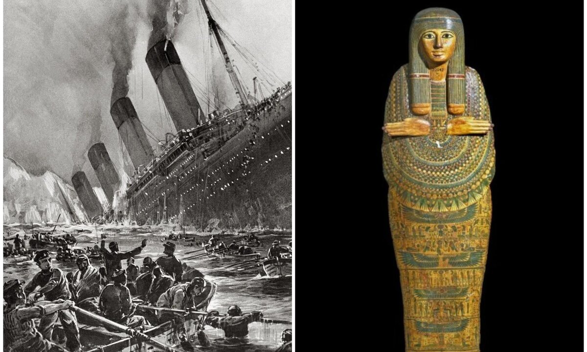 Так, британский историк лорд Кентервиль перевозил на «Титанике» в деревянном ящике прекрасно сохранившуюся мумию египетской прорицательницы времен фараона Аменхотепа IV (XIV век до н.э.). Под ее головой находился амулет с изображением Осириса — бога возрождения и царя загробного мира в древнеегипетской мифологии. Надпись на амулете гласила: «Восстань из забытья и одним взглядом победи всех, кто встанет на твоем пути». Считается, что именно она могла привести к гибели корабля.