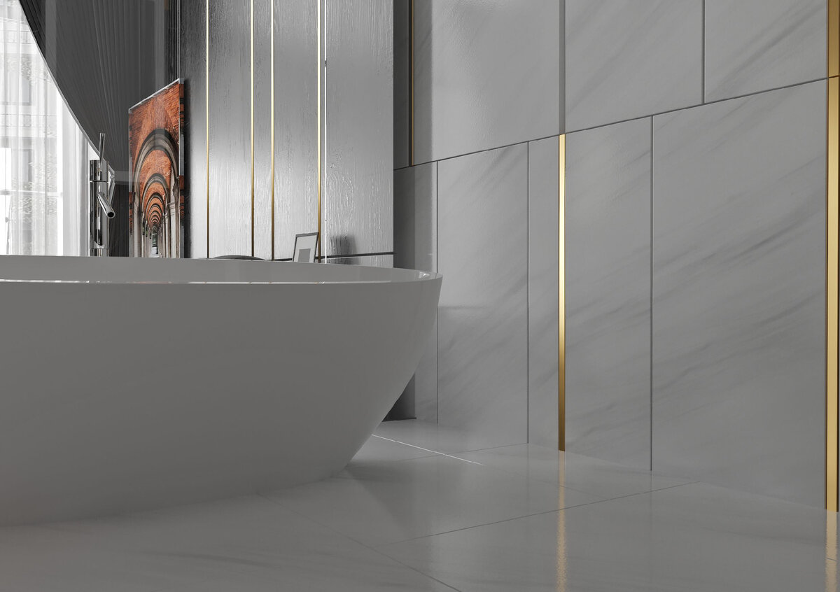 Облицовка стен и пола: также его применяют для облицовки стен и пола в ванной комнате. Он долговечный и легко чистится, что делает его идеальным материалом для использования во влажной среде.