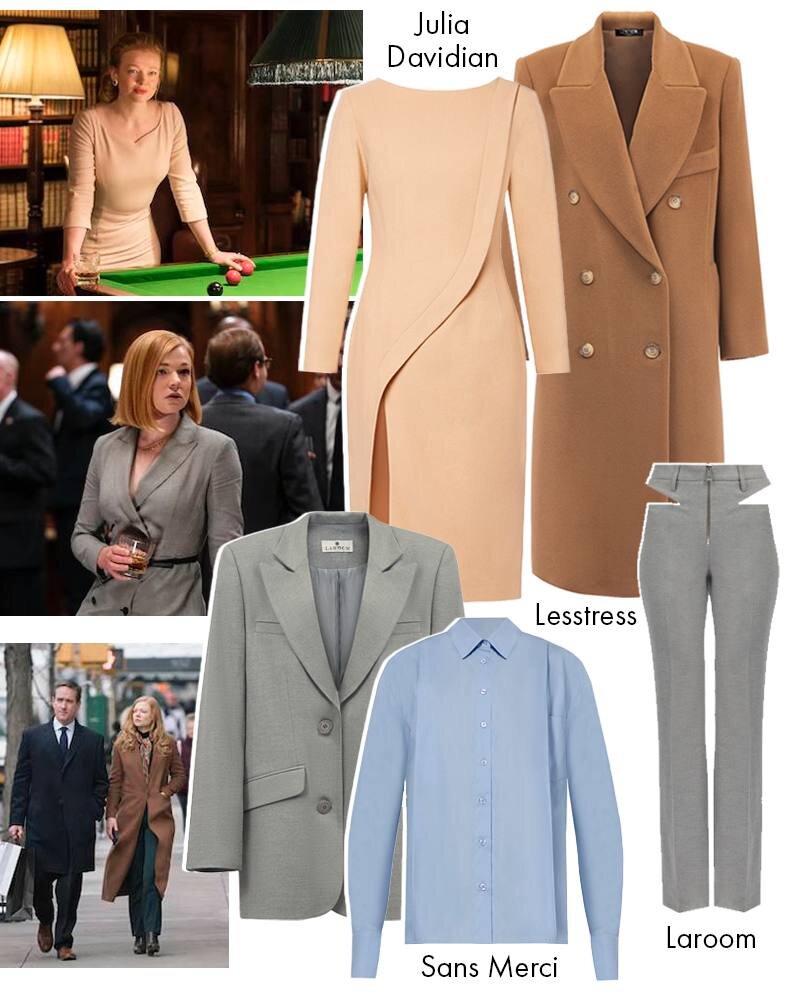 Семья Рой из популярного шоу «Наследники» грязно богата, чрезвычайно лицемерна и, к счастью, вернулась на четвертый сезон. Сериал рассказывает о манхэттенском медиамагнате Логане Рое, основателе развлекательного конгломерата Waystar Royco, и его четверых детях, которые борются за империю. Королевой клана является загадочная Шив Рой (Сара Снук), единственная девушка среди наследников . Смотрим вещи в стиле Шив с DressOne. У Шив стиль «старых денег», она одевается, просто, но дорого. Облачаясь в идеально скроенные костюмы и люксовый трикотаж, героиня определенно знает, что такое power dressing. Кремовые цвета, высокая талия и сумки из темной кожи. Она сочетает наряды с простыми золотыми украшениями, шелковыми шарфами, солнцезащитными очками-авиаторами. Пальто+Платье+ Рубашка+Жакет +Брюки;