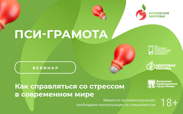 14 апреля 2023 года в 15:00 (мск) на цифровой платформе «Московская медицина. Мероприятия» в рамках проекта «PSY-Грамота» состоится вебинар «Как справляться со стрессом в современном мире». Спикером выступит старший медицинский психолог Центра психолого-психотерапевтической помощи Психиатрической клинической больницы № 4 им. П. Б. Ганнушкина Алина Белоусова. На вебинаре вы узнаете: Присоединяйтесь! Обещаем, будет интересно! Трансляция состоится здесь. Для тех, кто по каким-то причинам не сможет присоединиться к вебинару, его запись будет доступна на Ютуб-канале «Московское здоровье». «ПСИ-Грамота» – социально-ориентированный проект для жителей мегаполиса, направленный на повышение грамотности населения в вопросах психического здоровья. Узнавайте первыми о главных ЗОЖ-новостях столицы – подписывайтесь на «Московское здоровье»: Ютуб-канал, страницы в социальных сетях «Телеграм», «ВКонтакте» и «Дзен»!