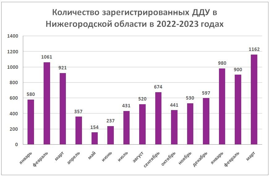 В марте 2023 года на территории Нижегородской области было зарегистрировано 1162 договора долевого участия (ДДУ). Об этом Гипермаркету недвижимости GIPERNN.RU сообщили в пресс-службе регионального Росреестра. Как отмечают наши коллеги из ДОМОСТРОЙРФ.РУ, показатель оказался рекордным с начала прошлого года, увеличившись за это время более чем на 20%.