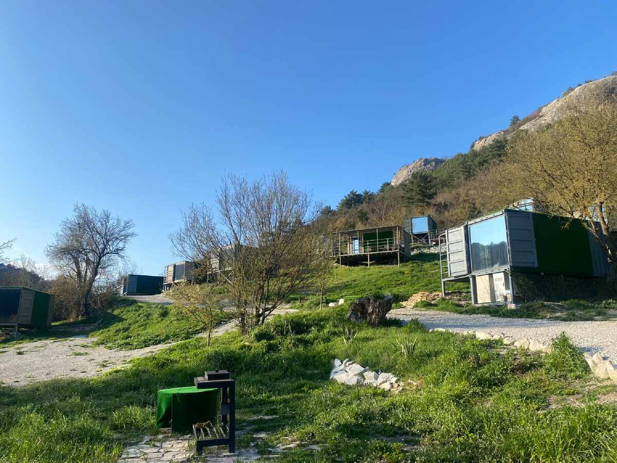 После холодной зимы и мартовской слякоти, так приятно радует глаз зелёная травка. Вот и мы дождавшись выходных решили разведать новое место. Находится оно в селе Ходжа Сала, у подножия пещерного города Мангуп - Кале, а если быть точнее у озера Мангупское. Места действительно богатые энергетикой и красотой, первые пару часов аж дух захватывает от причудливых скал вокруг. Внизу расположено озеро и небольшая деревенька с колоритным кафе, здесь и начинаются все маршруты к развалинам Мангуп-Кале и свящённому монастырю. Вернёмся к кемпингу) Открылся он относительно недавно, в октябре прошлого года. Поэтому ещё все новенькое и свежее. Нам хотелось отдохнуть на воздухе, пожарить мяса, насмотреться на горы и это удалось на все сто процентов. Сами домики находятся на достаточном расстоянии друг от друга, поэтому никто друг другу практически не мешает (ну это конечно смотря какие компании будут 😃), в основном все парами, поэтому супер дискотек здесь можно не ждать. В самом домике есть все для