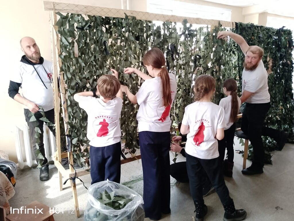 Юные казачата собственноручно сплели маскировочные сети, познакомились с волонтерами, оказывающими поддержку русским солдатам, посмотрели видео о волонтерах-калтанцах. Организаторы – «Калтан Z надежный тыл», руководитель Елена Чирцова, Лидия Нестнова и Марина Мальнева – волонтер благотворительного фонда «Сокол и ангелы» (г. Новокузнецк) — отметили слаженность, трудолюбие и дисциплину ребят.