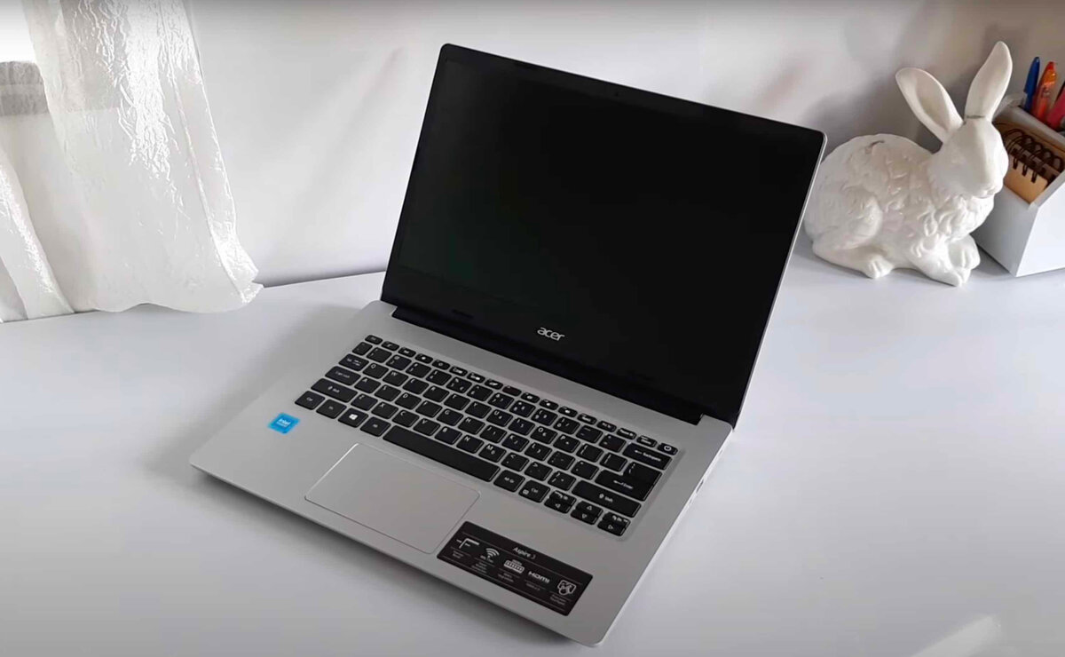 IPS-панель Acer Aspire 3 имеет разрешение Full HD, удобные углы обзора и хороший коэффициент контрастности. Кроме того, дисплей не использует ШИМ для регулировки яркости. Однако цветовой охват 55% sRGB означает, что изображение на экране будет не очень яркое, а скорее даже тусклое.