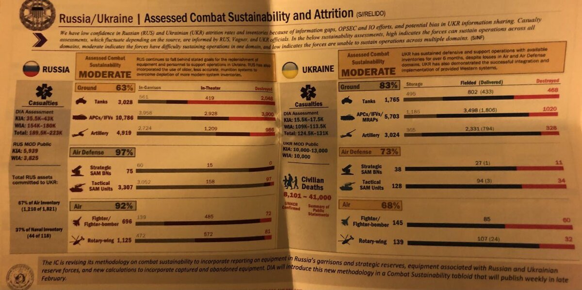 И вот на этом фоне появляется «утечка» информации. И уже Блумберг пишет: «Одна из крупнейших за десятилетие утечек может затруднить американскую поддержку Украины». The Times t` ей вторит: “Если контрнаступление на Украине провалится, то Киев может потерять поддержку со стороны Запада».