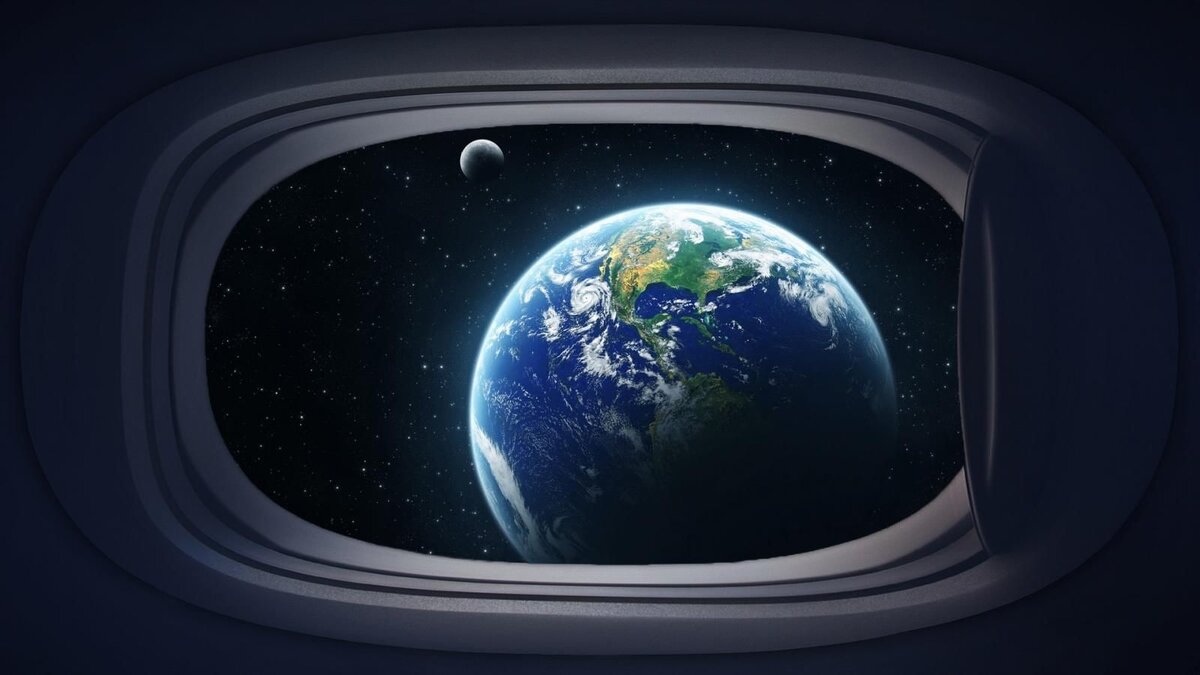 Маленькая одинокая планета из окна иллюминатора
