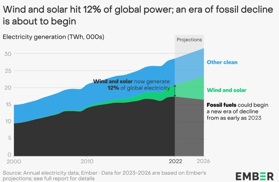 Доля солнца и ветра в производстве электроэнергии в мире достигла 12% в 2022 году