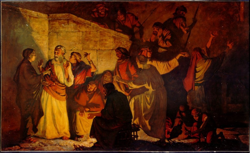 3. На рассвете Иисус предстал перед синедрионом, и было проведено официальное судебное заседание. Во время этого заседания были предъявлены «свидетельства» против Иисуса.