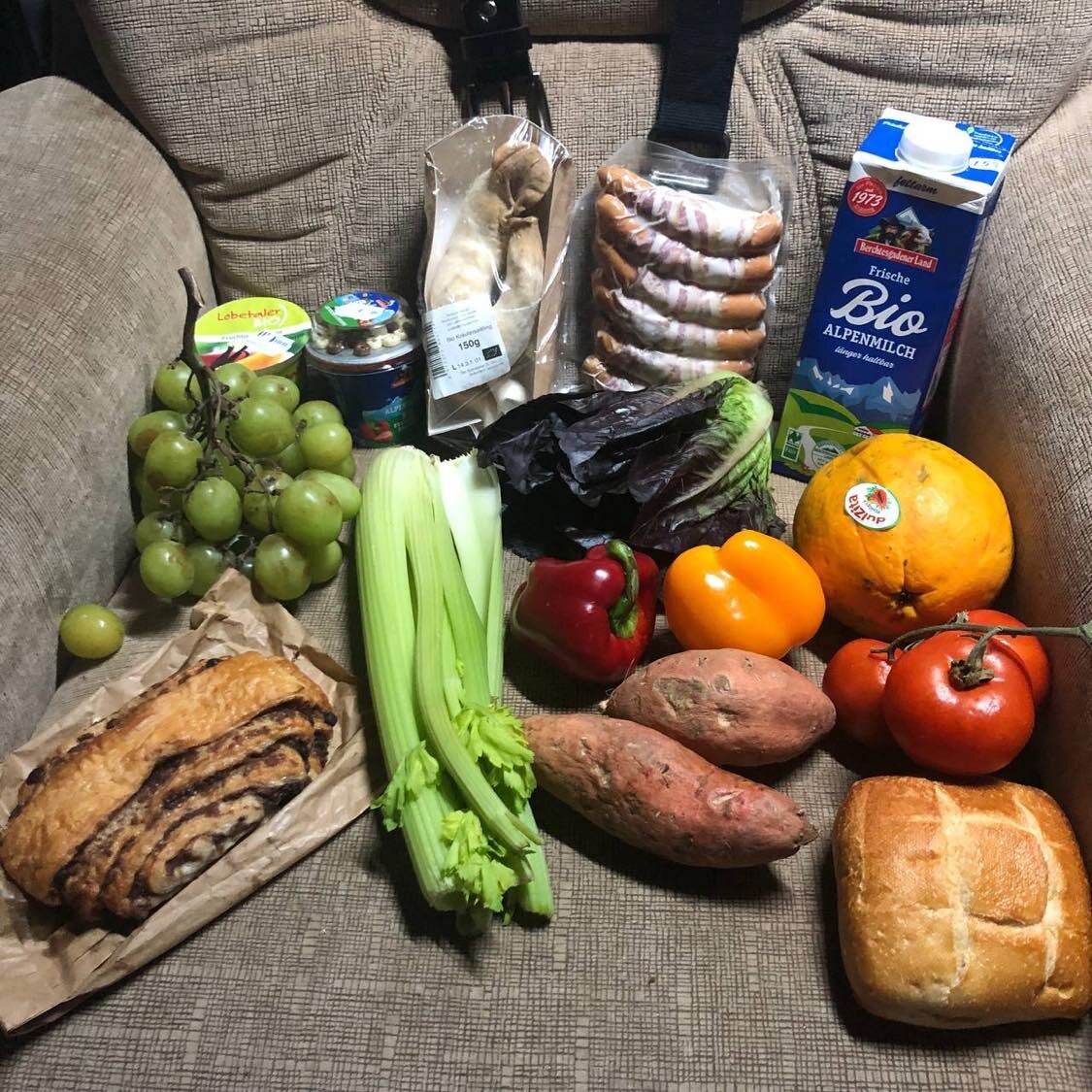 Было много зелени, редиски, но брать не стала, так как негде хранить, пол-ящика орешков - увы, не ем и пол-ящика различных немецких супов и ещё какой-то еды - думаю, это не вкусно, поэтому не взяла.