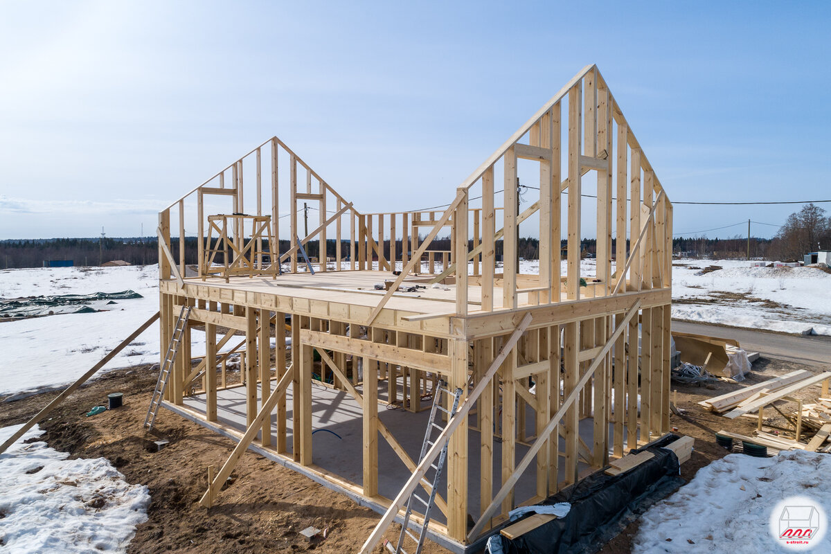 Строим первый каркасник в 2023 году: двухэтажный дом 7*11 на УШП, готовы стены первого этажа и перекрытие дома в Огоньково