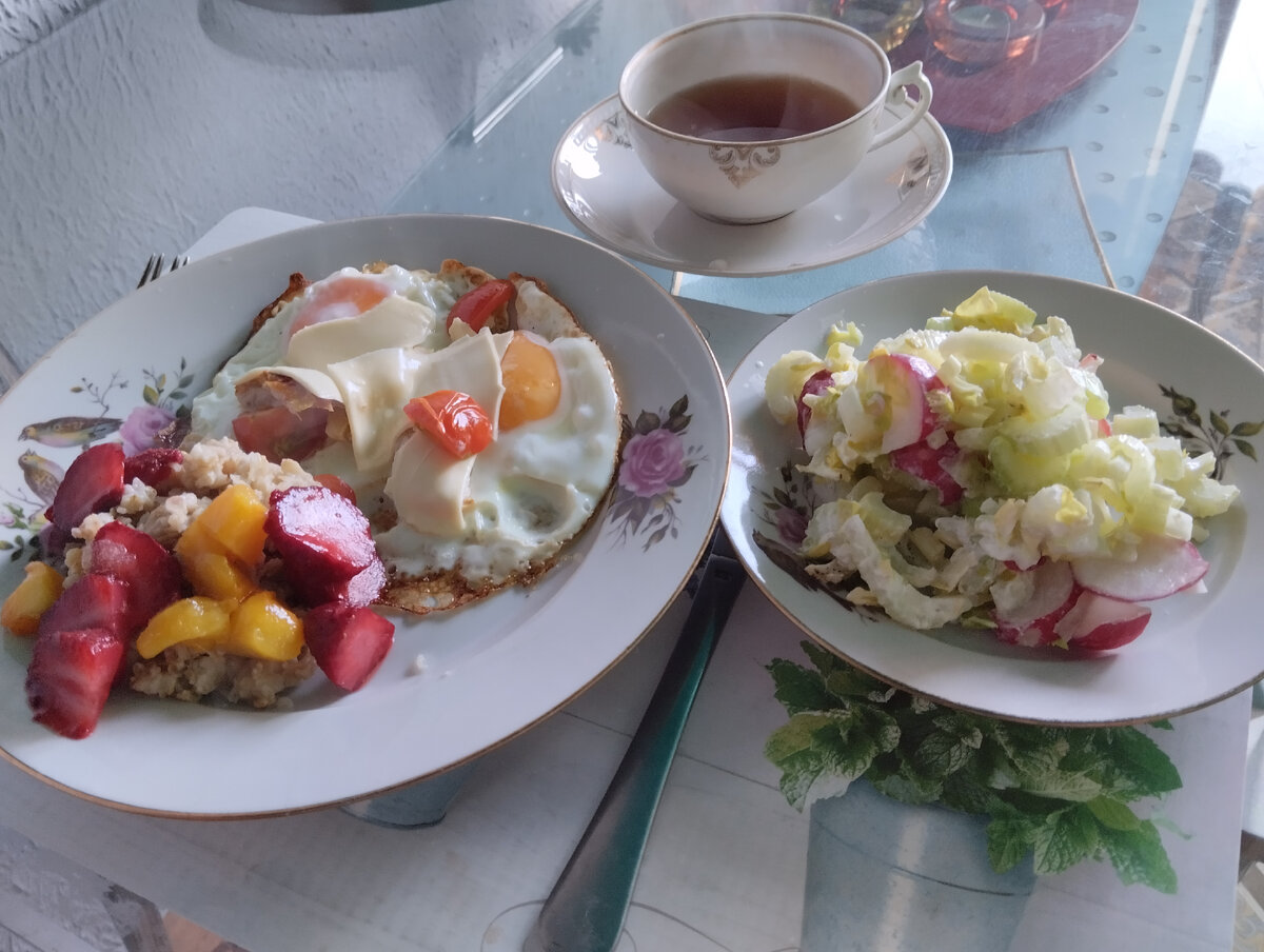 Привет, друзья! Вчера у меня был странный вот такой завтрак. Салат с сельдереем, яичница с помидорами и сыром, овсянка с клубникой и манго. Потом я пошла к папе, отмыла кухню у него и вымыла 2 окна. Работала с 9 утра до 15ти, аж спина заболела . Санузел смогла отмыть только наполовину. Вообще то к него чисто, он молодец, но я решила генеральную провести😁 Сполоснулась, , сижу у него, обедаю тем что и папа сготовил, и чуть не подавилась, когда он мне сказал о том, что если бы я пришла к нему в субботу, то могла бы намного больше всего вымыть. 😁 Он тот ещё жук у меня в 80 лет😆😁😁 Пошла на работу, у многих возле домов вот такая, красота уже. На работу пришла я к 16ти и работала до 20ти. Шла домой, тепло так на улице, просто прелесть. И на душе хорошо. Спасибо, друзья, что заходите на мой канал! Ваша Лейла