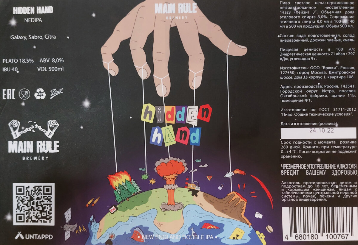 Двойная New England IPA от московской микропивоварни MAIN RULE (они же ООО "Брюки").