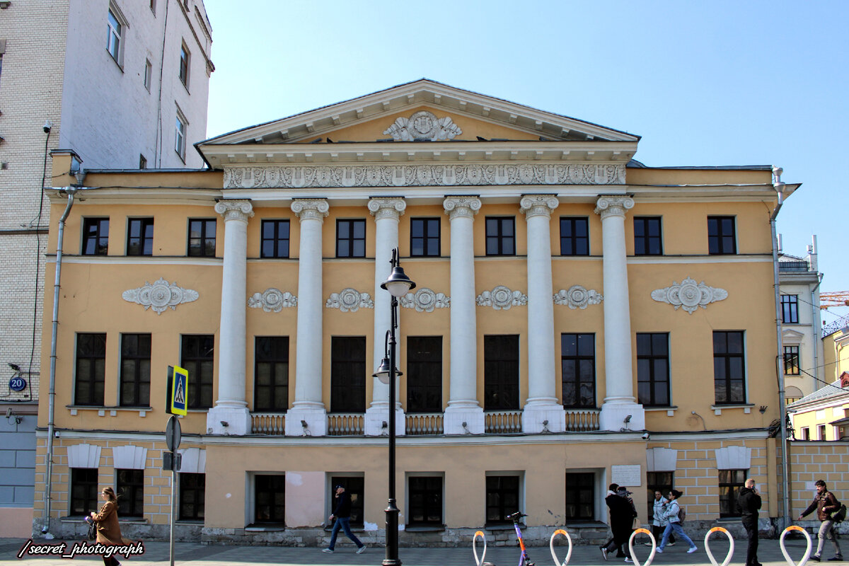 А совсем недавно вдоль верхней части цоколя еще и шла рекламная надпись «Агентство недвижимости "ПРИВАТ"». Благо теперь ее убрали, и больше ничто не портит гордый ампирный облик дома №18 по все той же нашей любимой Пятницкой улицы.