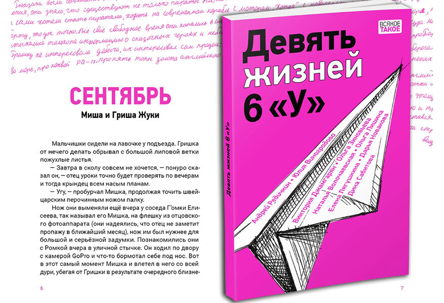 Книга «Девять жизней 6 “У”» рассказывает о шестом классе совсем новой школы. «У» ‒ официально значит Универсальный, то есть не какой-нибудь математический или лингвистический, а самый обычный. Хотя классный руководитель с интересным отчеством Александр Арвильевич в первый же день расшифровал эту букву по-своему: Удивительные, Уникальные, Умные. Этим он мне сразу понравился: совершенно еще не зная своих учеников, он уже видел в них самое лучшее и верил в их способности. В книге 9 глав – это 9 месяцев учебного года и 9 учеников. Школа новая, поэтому и класс новый. Одни ученики переехали из другого района, некоторые – из другого города, а кто-то ‒ вообще из другой страны. Они все настолько разные, как будто с разных планет, и удивляешься, как получилось, что они собрались в одном классе. Герои трех «осенних» глав ‒ братья-близнецы из Мурманска, мечтающие о морских кладах и встречах с пиратами; девочка Люба с редкой фамилией, нашедшая «брата»; выскочка и воображала Настя, для которой цель
