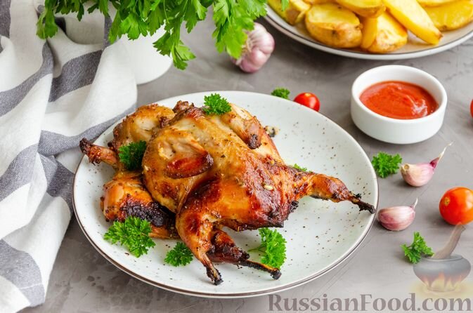 1. Перепелок разрежьте вдоль, снимите грудки, оставшиеся куски лопатки и крылья. Грудки немного откройте, чтобы они стали плоскими. Сбрызните мясо перепелок оливковым маслом и посыпьте специями со всех сторон.