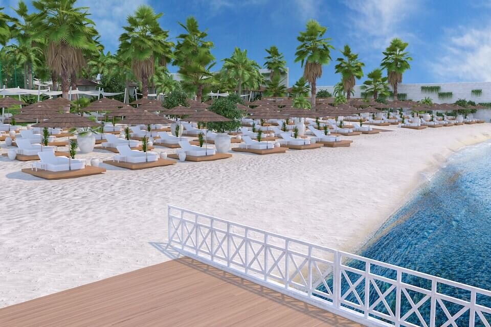 Зато в глаза сразу бросаются внушительные бассейны и широкая линия пляжа с пирсом.